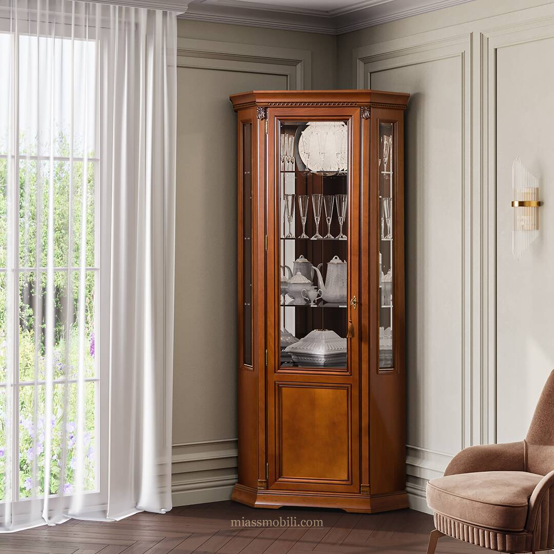 Шкаф для посуды угловой Лоренцо вишня Lorenzo вишня купить в Краснодаре