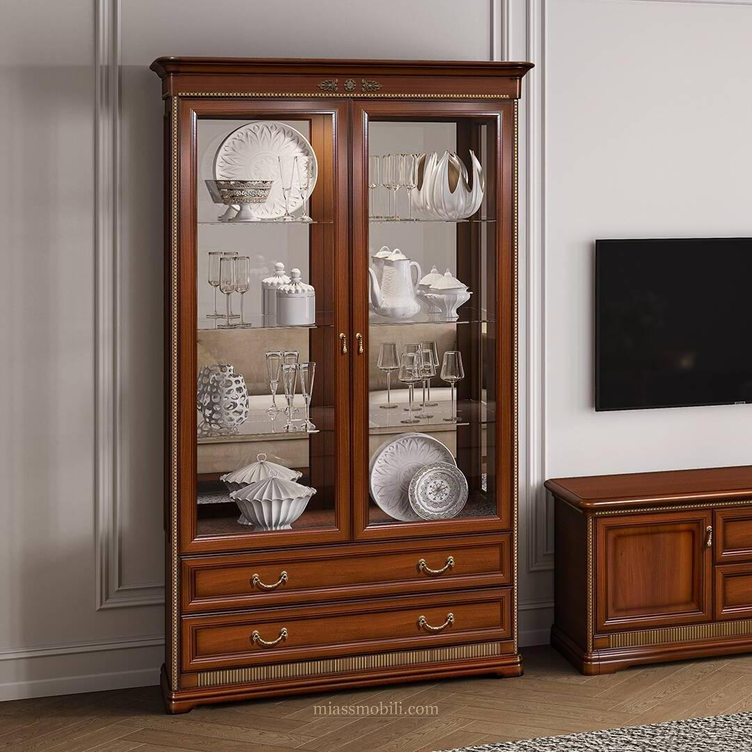 Шкаф 2-х дв для посуды с зеркалом Joconda орех купить в Краснодаре