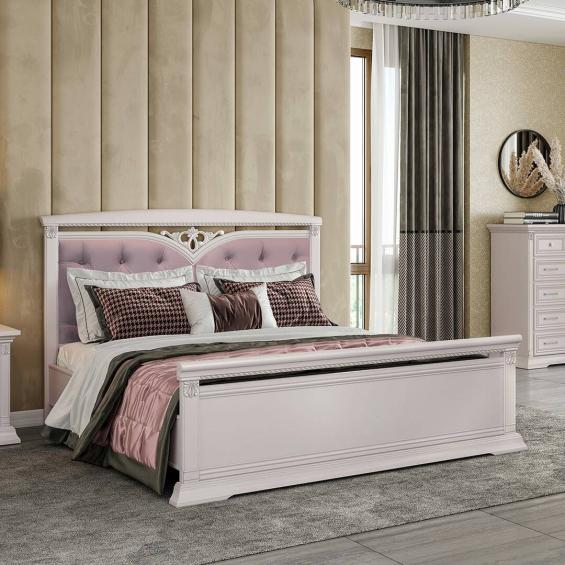 Кровать двойная (1800х2000) Lorenzo пудра с мягкой головной и ножной спинкой Lorenzo пудра купить в Краснодаре